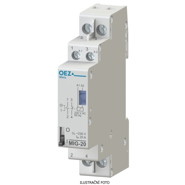 Impulzní relé OEZ MIG-20-20-A230, 20A 230VAC, modul, 2xzapínací kontakt, 43186