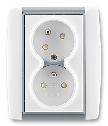 Zásuvka dvojnásobná s ochrannými kolíky, s clonkami, s natočenou dutinou