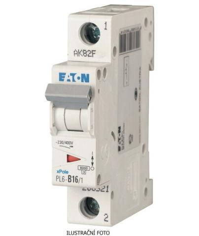 Jistič řady PL6. Charakteristika C: použití pro jištění obvodů s motory nebo s vyššími proudovými rázy.