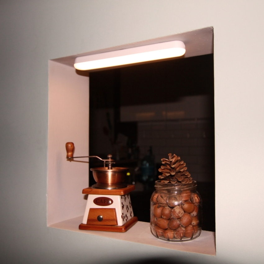 - Základnu nástěnného svítidla můžete připevnit na zeď nebo skříňku páskou