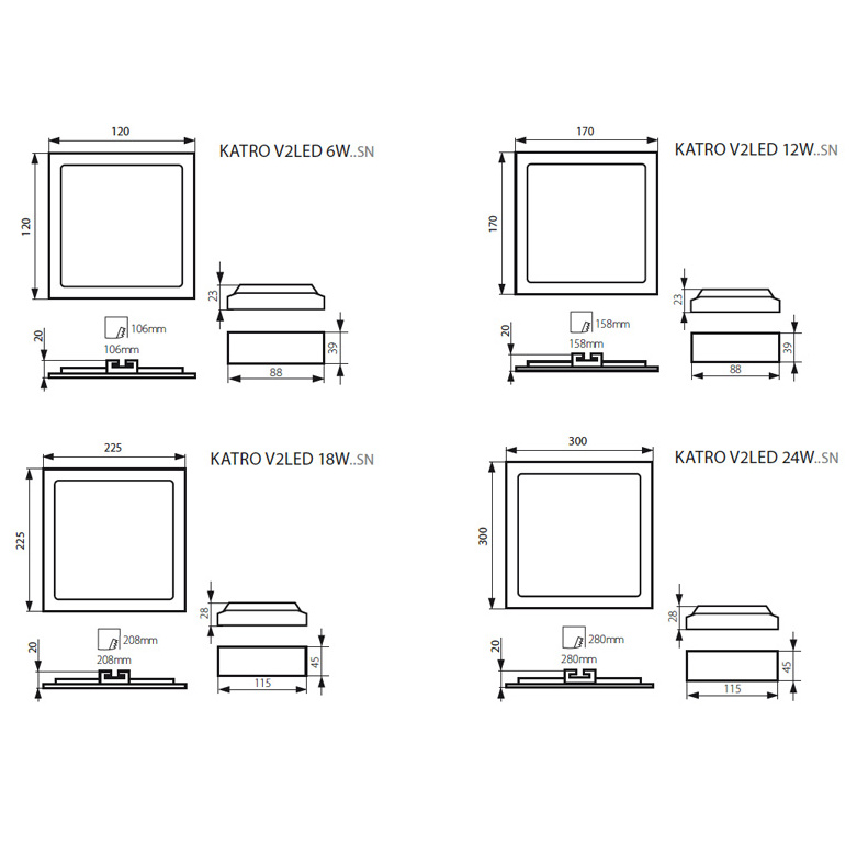 Kanlux KATRO V2LED je nová verze svítidel KATRO N LED, populárních hranatých stropních svítidel pro vnitřní použití. Kombinují estetický design se světlem získaným díky LED technologie. Vysoká třída krytí IP44 zabraňuje pronikání vody a prachu do interiéru.