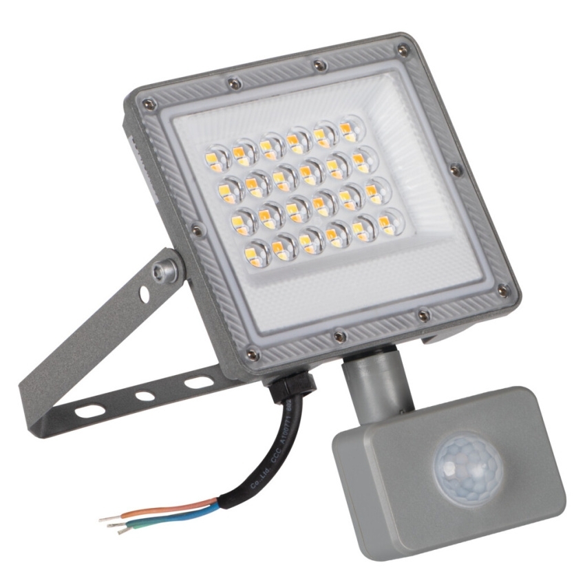 LED Reflektor Kanlux ACETE 20W CCT SE s PIR čidlem, 3000–6500 K, IP44, Šedá (38496)