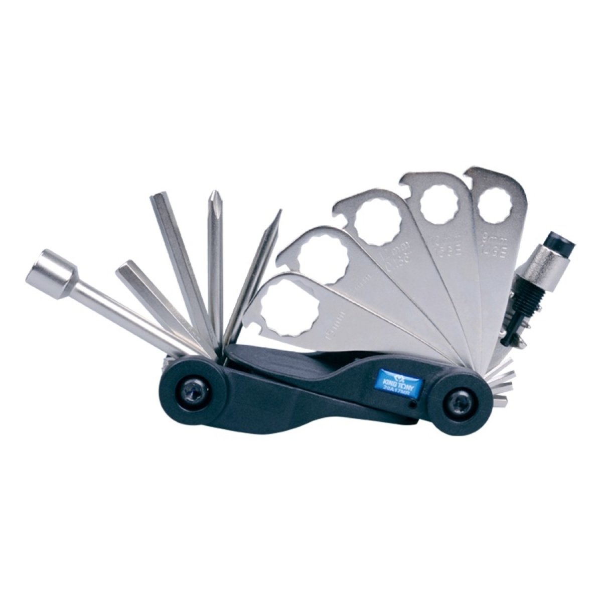Univerzální sada nářadí King Tony 20v1 je ideální volbou pro cyklisty, kteří chtějí být připraveni na jakoukoli drobnou opravu na cestách. Kompaktní design ve stylu kapesního nože umožňuje snadné přenášení v kapse nebo brašně u kola. Nářadí zahrnuje nejběžnější typy klíčů a pomůcek včetně inbusů, centrovacího klíče, montážních páček a klíče na řetěz. Výrobek odpovídá nejvyšším kvalitativním normám a je vhodný pro každodenní použití i náročnější podmínky.