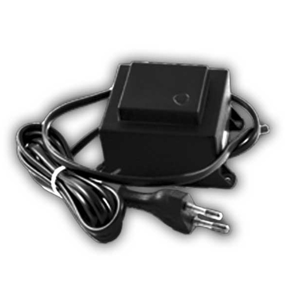 Transformátor zalitý v plastu s přívodním kabelem pro převod napětí z 230V/50Hz na 12V/50Hz o výkonu 30 VA.