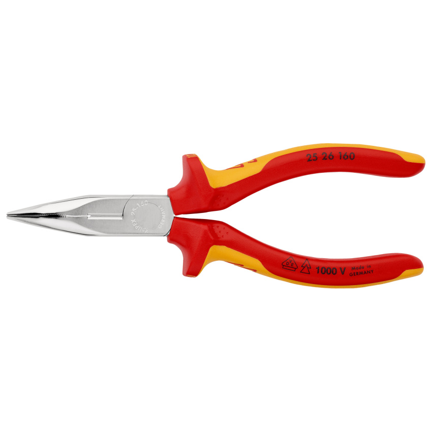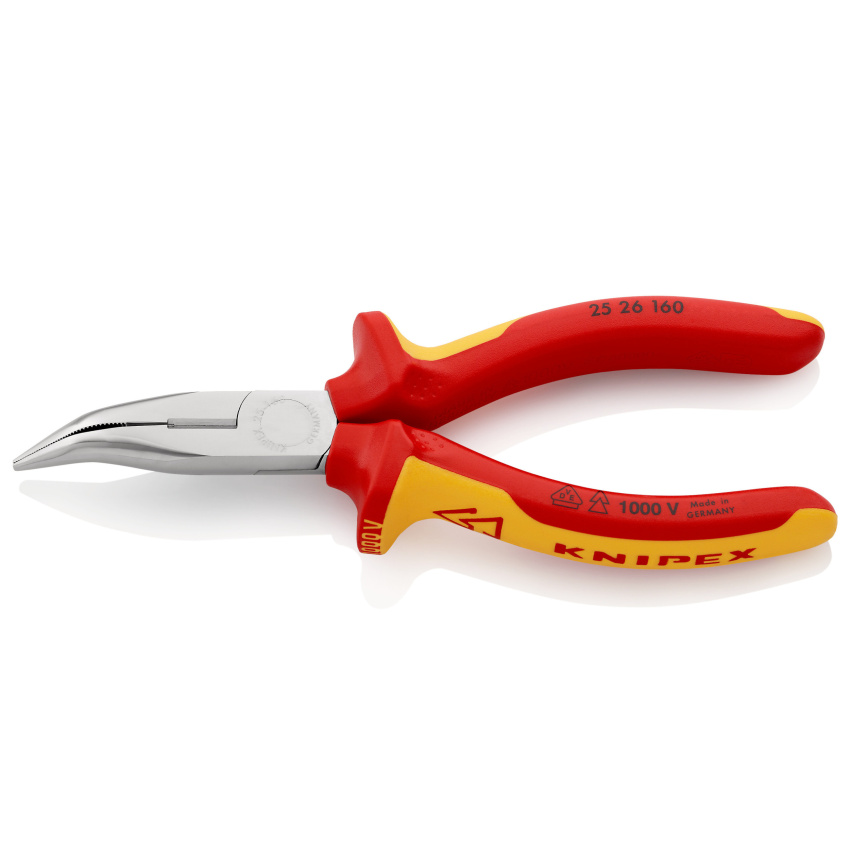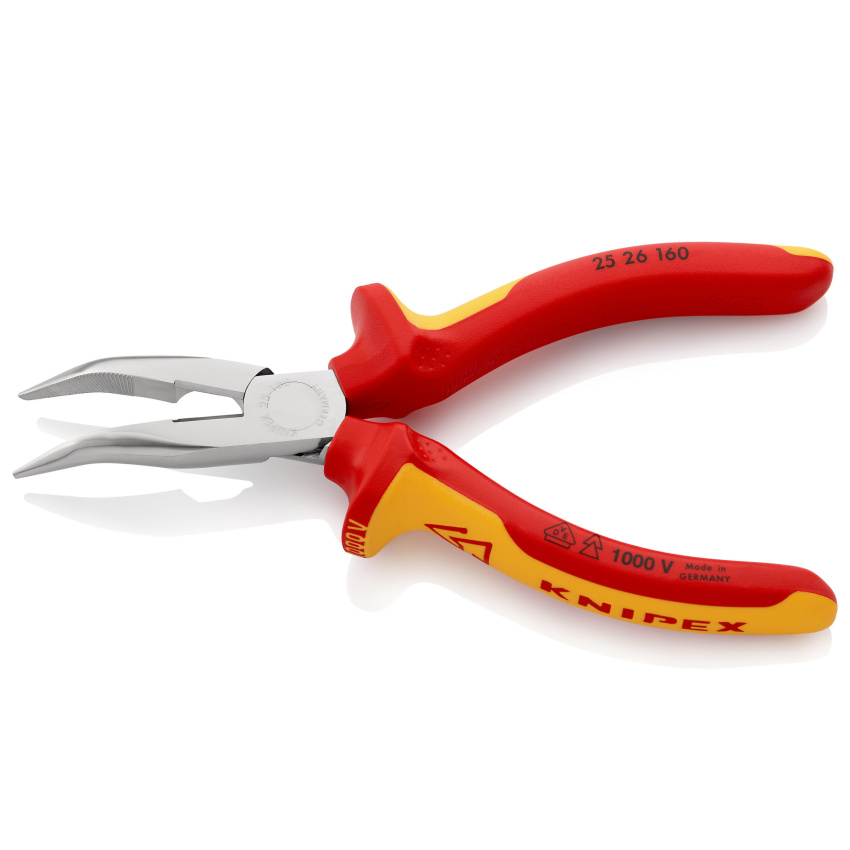 KNIPEX 2526160 PŮLKULATÉ KLEŠTĚ S BŘITY /ZAHNUTÉ/ RUKOJET DVOUBAREVNÁ 1000V