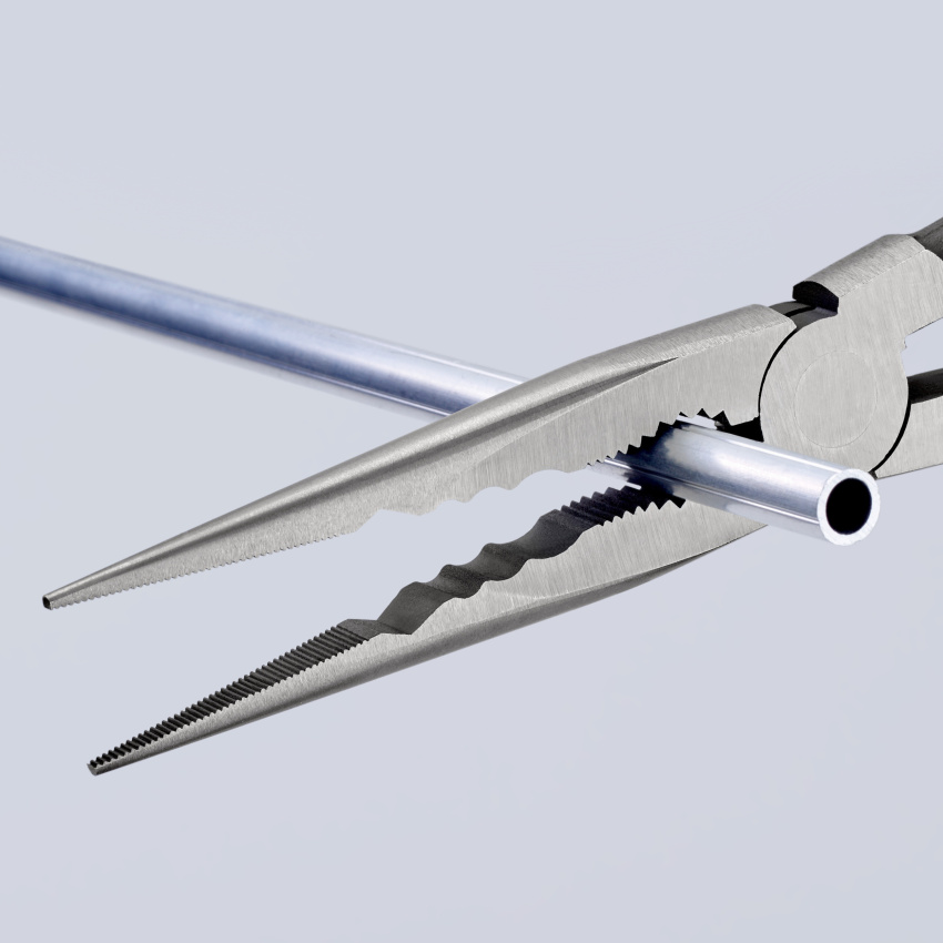- Šetrné a přesto bezpečné uchopení, držení a vedení malých měděných trubek, šroubů a kabelů a jiných kulatých dílů díky frézovaným drážám s hladkým povrchem.