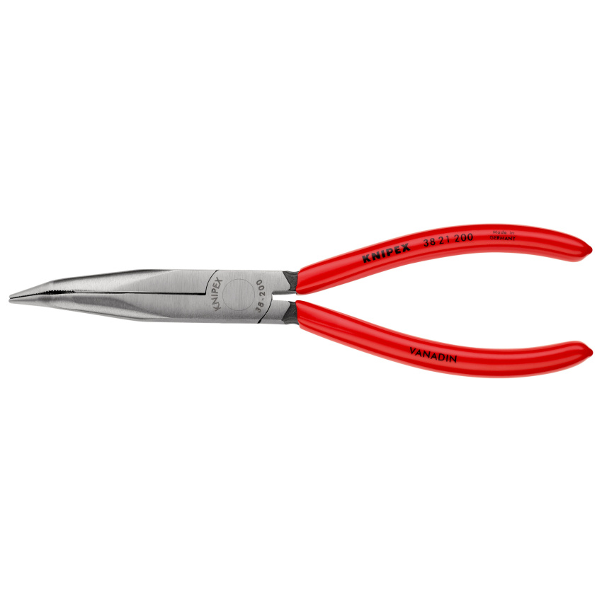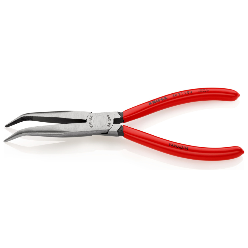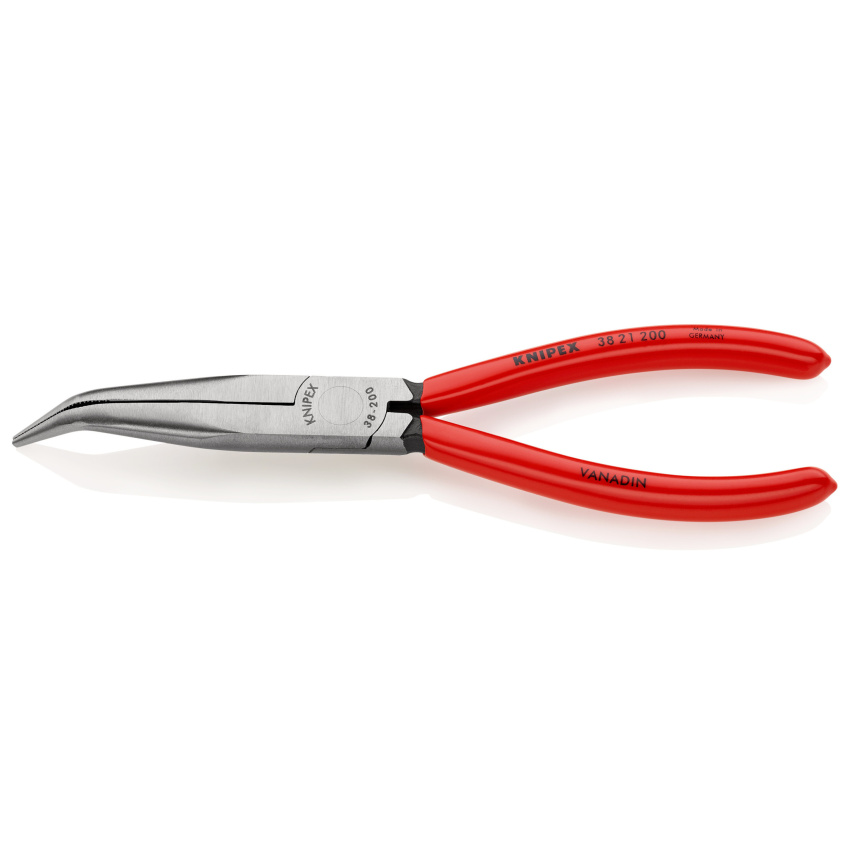 Knipex 38 21 200 - Kleště s půlkulatými čelistmi 200mm vyhnuté 40°, špičaté, dlouhé, leštěné, rukojeti potažené plastem