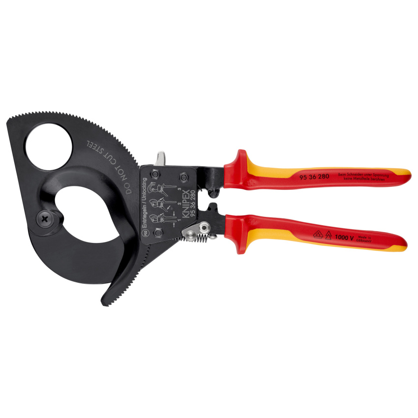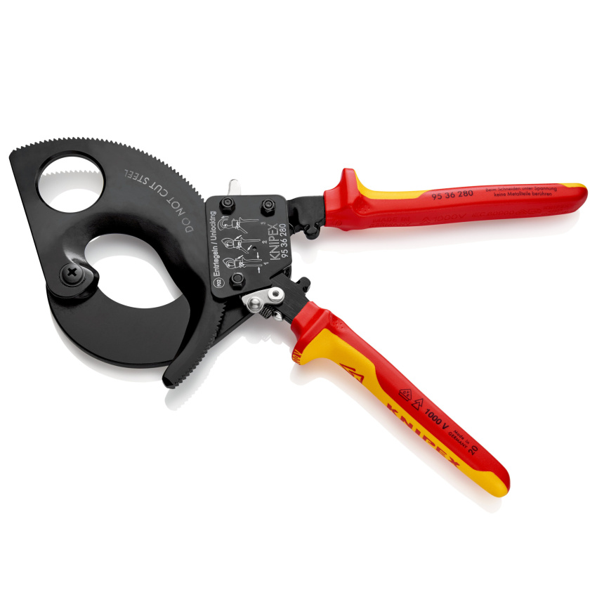 KNIPEX 9536280 NŮŽKY NA KABELY RÁČNOVÉ DÉLKA 280MM. MAX. STŘIŽNÝ PRŮM 52MM VDE 1000