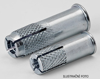 Ocelová kotva s vnitřním závitem a rozpěrným čepem. Aplikace pomocí ručního zarážecího nástroje.