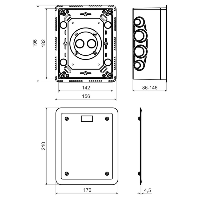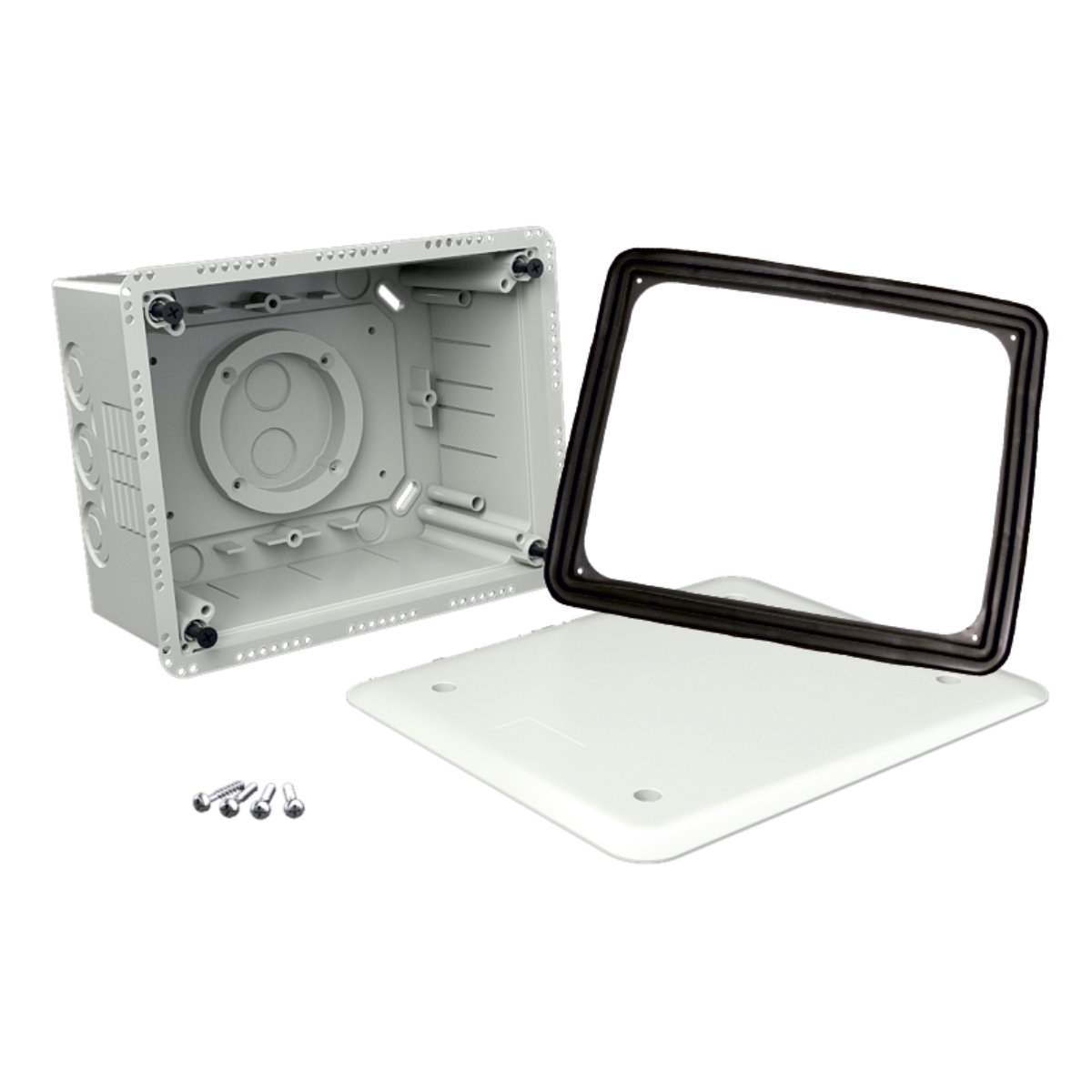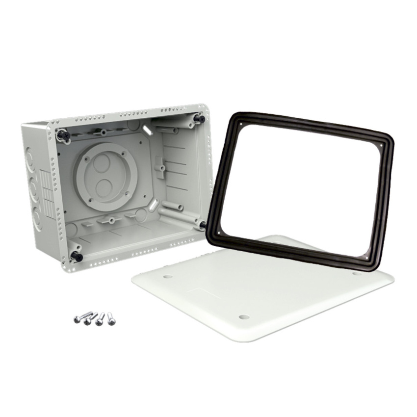 Krabice do zateplení s víkem KUZ-V, konfigurace KB, barva světle šedá, balení 1ks, univerzální krabice s nastavitelnou hloubkou pro montáž nejen do zateplení