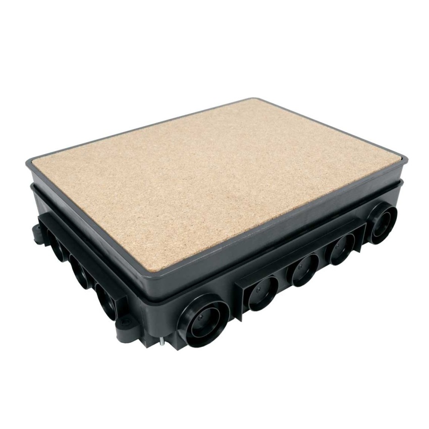 Univerzální podlahová krabice - požadovaná výška krabice se nastaví zvyšováním vnitřní vložky pomocí šroubů v rozích krabice. Součástí balení je krycí deska zabraňující zalití krabice při betonování. Po vytvrdnutí betonové směsi se osazuje podlahovou krabici KOPOBOX 57. Minimální výška betonové vrstvy je 80 mm, maximální 95 mm. Pro větší výšku betonové vrstvy než 95 mm je nutné použít sadu nivelační SN (4 ks). Krabice je uzpůsobena pro instalaci el. trubek (průchody lze vytvořit postupovým vrtákem VBU a podlahového kanálu PUK.