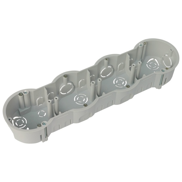 SEZ KUP 68LP/4 SK čtyřnásobná krabice do sádrokartonu a dutých stěn, pro rozvody s napětím do 400V a max. proudem 16A, 850 °C pro přístroje s čtyřnásobným rámečkem.