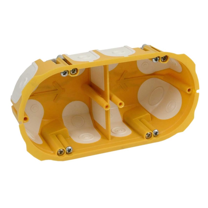 Pro moderní instalace ve sdružených rámečcích. Výrazná tuhost a jednoduchý tvar zjednodušuje instalaci přístrojů. Vstupní otvory vyrobeny z pružného materiálu. Zajištěna vzduchotěsnost prostupu i při vloženém kabelu nebo trubce. Zabraňuje proudění vzduchu instalací. Vhodná pro nízkoenergetické nebo pasivní domy. Na vnější straně tři hroty označující vrtací body. Montážní šrouby jsou opatřené dvojchodým závitem pro rychlou instalaci. Instalace krabice v otvoru se provádí utažením montážních šroubů. Instalace kabelu se provádí odstraněním (vytržením) předlisovaného membránového vstupu a následným vložením kabelu případně trubky. Chráněno evropským průmyslovým vzorem. Při montáži není nutné zahlubovat okraj sádrokartonu.