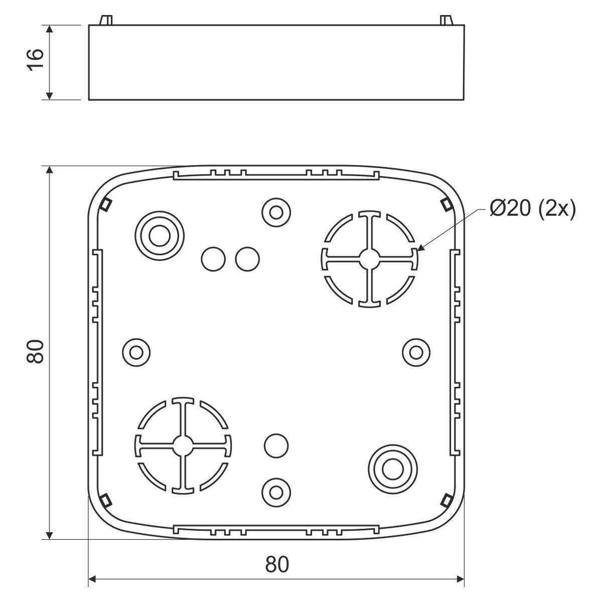 Krabice lištová KOPOS LK 80x16 T HB 80,5x80,5x16mm bílá