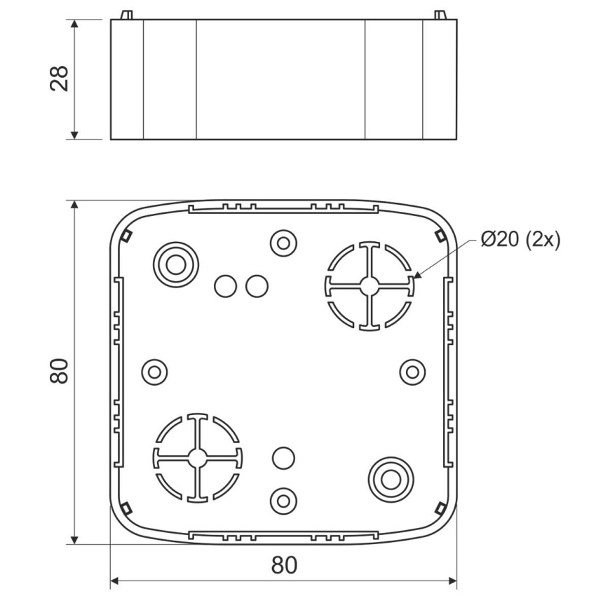 Krabice lištová KOPOS LK 80x28 T HB 80,5x80,5x28mm bílá