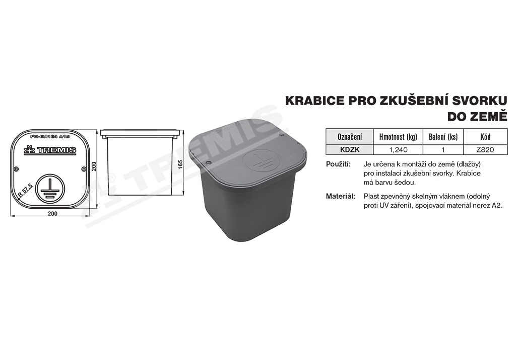 Krabice pro zkušební svorku do země TREMIS KDZK Z820 šedá