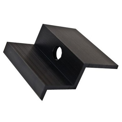 - Černě eloxovaný úchyt z hliníku určený k uchycení solárních panelů na krajní části nosného H profilu. Má délku 50 mm a je navržen pro panely s hrany o výšce 35 mm.