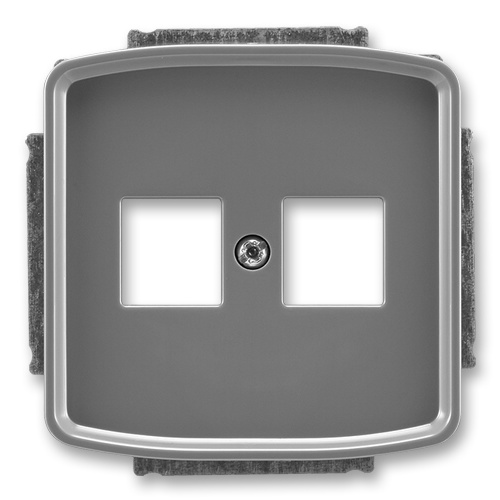 Kryt zásuvky komunikační. S kovovým upevňovacím třmenem. Pro upevnění dvou komunikačních zásuvek typu Modular-Jack (keystone), záslepek nebo reproduktorových svorek. Rozměry otvorů: 19,4 × 14,8 mm