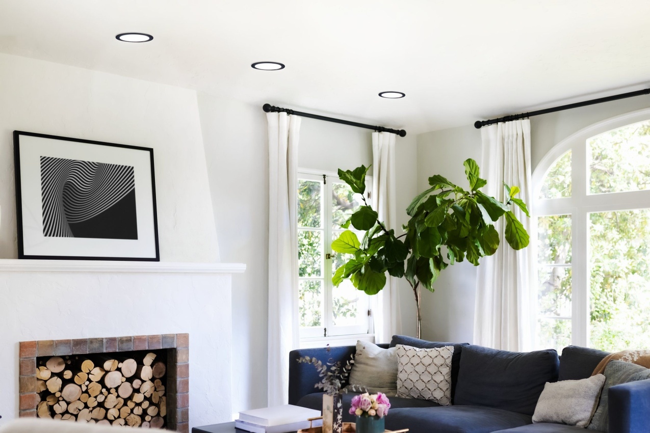 - Jednoduché, elegantní, kulaté LED svítidlo s černým lemem, které lze zapustit do stropu nebo stěny.