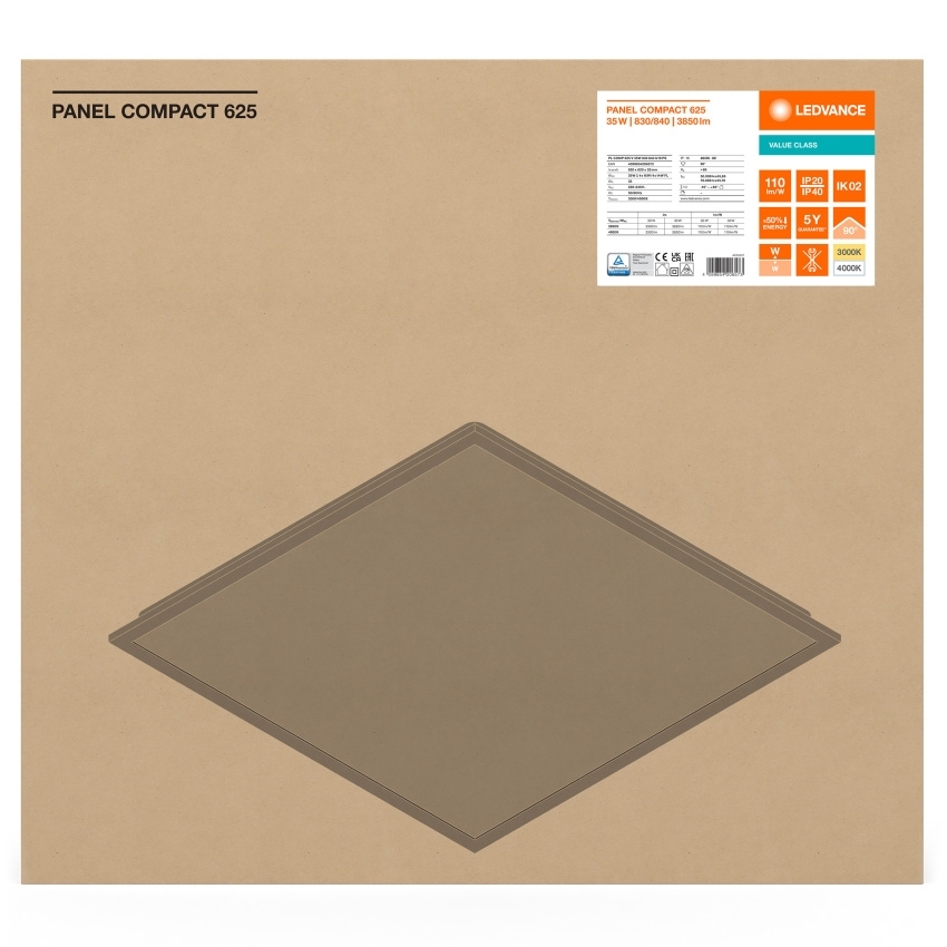 LED panel vestavný LEDVANCE Compact 625 V 35W 3000/4000K UGR19 PS 3850/3300 lm 625x625mm bílá