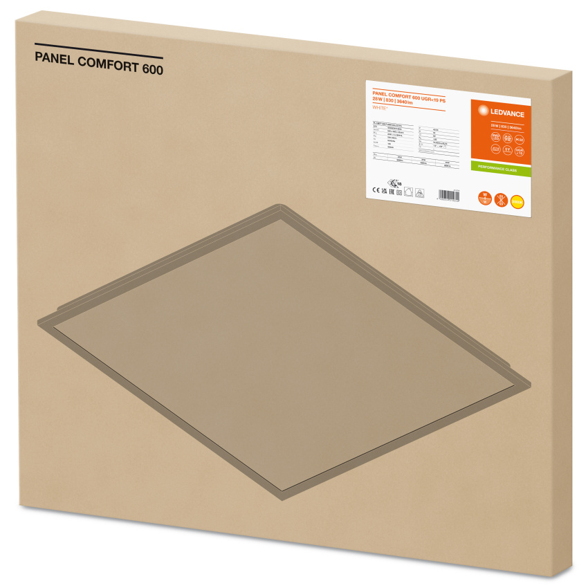Čtvercová vestavná panelová svítidla s funkcí power select (PS) a nízkým oslněním, pro stropní systémy 600 x 600 mm. Vlastnosti produktu: 28W/25W/22W, 3640 lm/3250 lm/2900 lm. Rám z protlačovaného hliníku. Polystyrenový difuzor. 5pólová svorkovnice, průřez kabelu do 5 x 2,5 mm². K dispozici jsou verze svítidel s ovladačem DALI-2 připraveným na IoT. K dispozici je provedení s CRI 90. Životnost (L80/B10): 70 000 h (při 25 °C). Výhody produktu: Vysoce univerzální díky volitelným stupňům výkonu (Power Select - PS) na driveru. Elektrické propojení bez použití nářadí díky zasouvacímu konektoru. Možnost průchozí kabeláže pomocí dodané připojovací krabice. Energeticky úsporné díky vysoké účinnosti systému: až 130 lm/W. Spolehlivé snížení oslnění (UGR ≤19). Vysoká barevná konzistence s SDCM 3. V provedení s DALI jsou k dispozici rozšířené služby jako např. sledování spotřeby energie a dálková údržba. Externí předřadník pro dodatečnou flexibilitu a snadnou instalaci. Světlo s nízkou úrovní blikání díky speciálnímu předřadníku. Možnost nouzového osvětlení díky nouzovému modulu LEDVANCE. 5letá záruka. Druh použití: Přímá náhrada za vestavná svítidla se zářivkami. Kanceláře, konferenční místnosti. Recepce, vstupní haly, chodby, výtahy. Vhodné pro systémy zapuštěných světel do stropů o velikosti mřížky 600 × 600 mm. Výbava / příslušenství: K dispozici je příslušenství pro několik způsobů montáže. Včetně připojovací krabice s 5 pólovou svorkovnicí. Přiloženo je bezpečnostní lanko pro svítidlo. Předinstalované bezpečnostní držáky. Včetně externího předřadníku. Vhodné pro použití se samostatným nouzovým modulem.