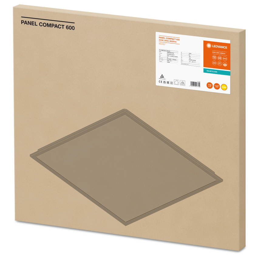 Čtvercová vestavná panelová svítidla pro stropní systémy 600 x 600 mm. Vlastnosti produktu: Rám z protlačovaného hliníku. Polystyrenový difuzor. Životnost (L80/B10): až 50 000 h (při 25 °C). Výhody produktu: Světlo s nízkou úrovní blikání díky speciálnímu předřadníku. Úspora energie díky účinnosti systému až 110 lm/W. Externí předřadník pro dodatečnou flexibilitu a snadnou instalaci. K dispozici je provedení s DALI ECG. 5letá záruka. Druh použití: Přímá náhrada za svítidla se zářivkami. Kanceláře, konferenční místnosti. Recepce, vstupní haly, chodby, výtahy. Vhodné pro systémy zapuštěných světel do stropů o velikosti mřížky 600 × 600 mm. Výbava / příslušenství: K dispozici je příslušenství pro několik způsobů montáže. Přiloženo je bezpečnostní lanko pro svítidlo. Předinstalované bezpečnostní držáky. Včetně externího předřadníku. Vhodné pro použití se samostatným nouzovým modulem. Samostatně k dispozici konektorový box s 5pólovou svorkou pro průchozí kabeláž pro průřezy kabelů do 2,5 mm².