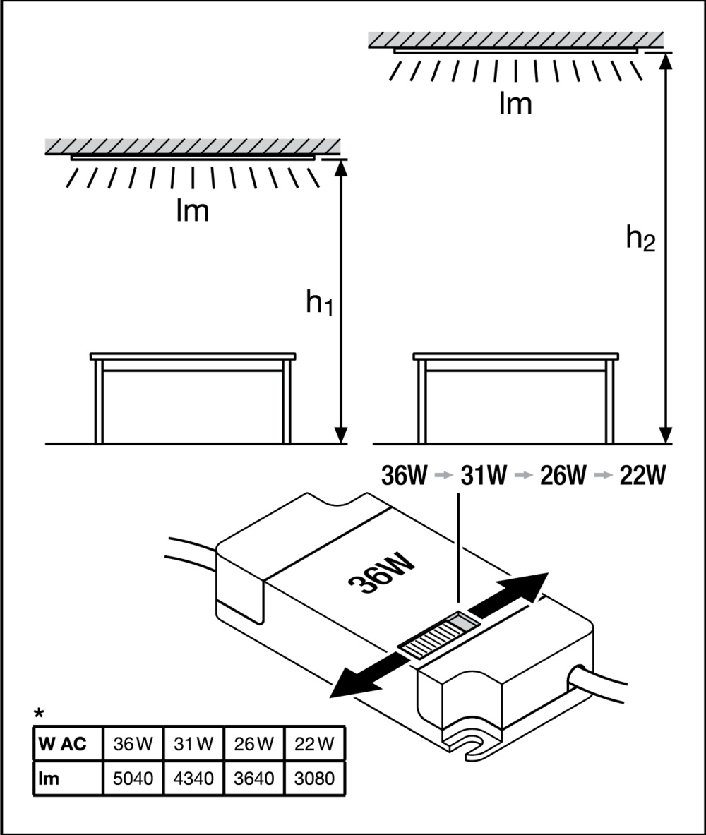 - Jmenovitý výkon: 36 W / 31 W / 26 W / 22 W