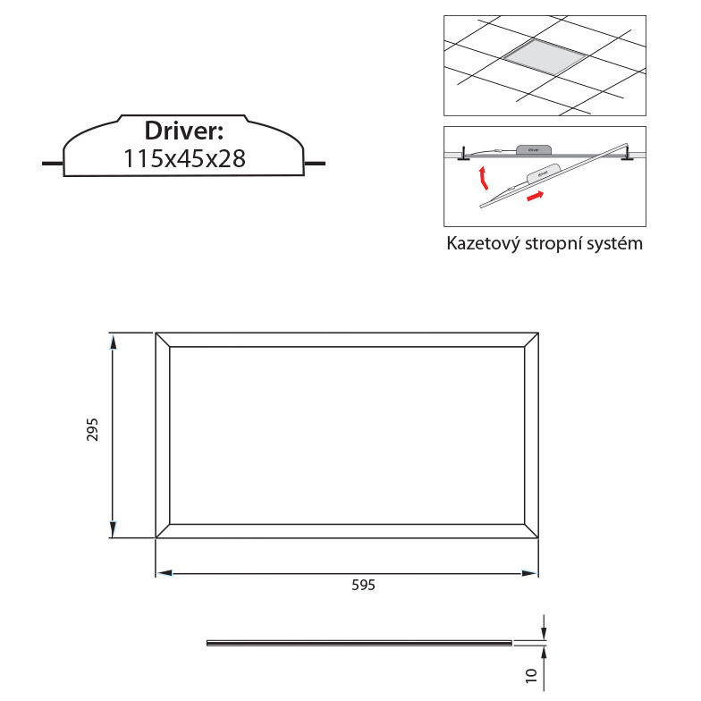 LED panelové svítidlo 18 W (ekvivalent 2 x 18W T8 úspora až 50 %) bílý rám, 230V, IP20, 4000 K-neutrální bílá, světelný tok 1530 lm, vyzařovací úhel 120 °, Ra>80, životnost až 30.000 h, rozměry 295x595x10, materiál hliník/plast, nestmívatelné, PF>0,9.