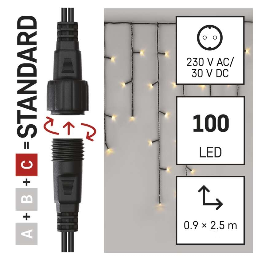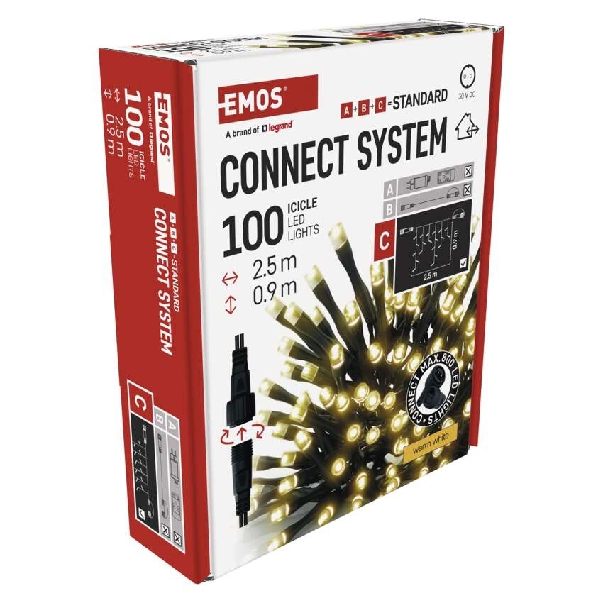 LED propojovací vánoční řetěz EMOS Connecting D1CW01 100LED krápníky teplá bílá bez zdroje