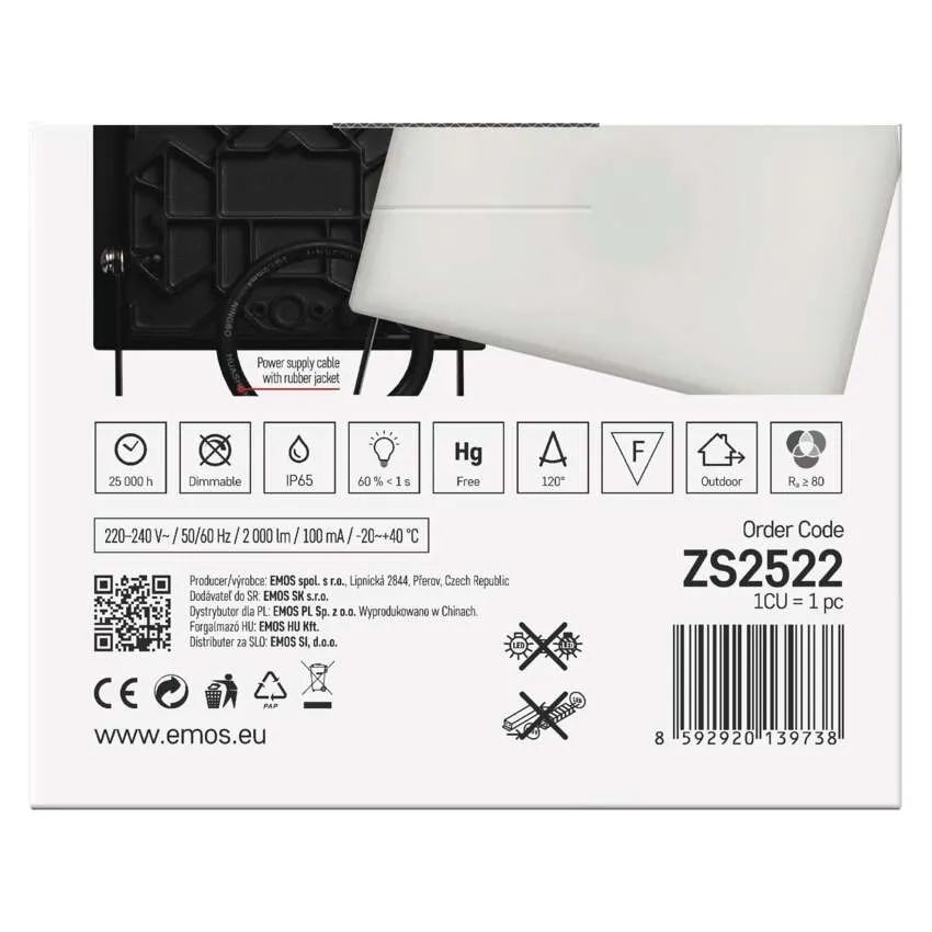 LED reflektor EMOS TAMBO 20W (ZS2522) je ideálním řešením pro efektivní a úsporné osvětlení venkovních i vnitřních prostor. Díky ultratenkému designu a krytí IP65 je vhodný pro použití v náročných podmínkách, kde odolá vodě i prachu. S výkonem 2000 lm a neutrálním bílým světlem 4000 K poskytuje příjemné a rovnoměrné osvětlení, které se blíží dennímu světlu. Robustní hliníkové tělo a mléčný difuzor zajišťují dlouhou životnost a vysoký vizuální komfort. Reflektor se snadno instaluje díky zešikmené montážní konzoli a šetří až 90 % nákladů na energii oproti klasickým halogenovým svítidlům.