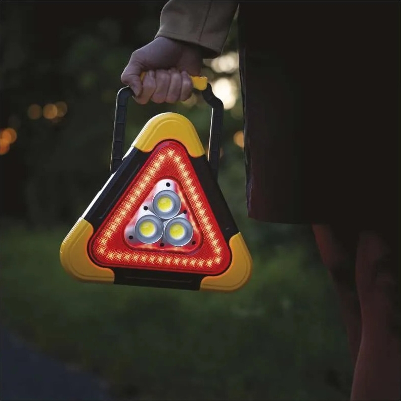 EMOS nabíjecí varovný trojúhelník P4010 je přenosné svítidlo kombinující COB LED a červenou LED určené pro výstražné osvětlení.