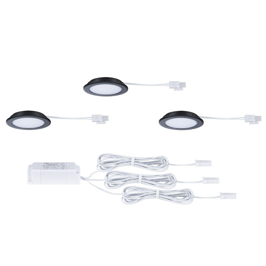 PAULMANN LED vestavná nábytková svítidla, sada 3 ks, kruhové, 65 mm, 3× 2,5 W, 4000 K, černá mat.