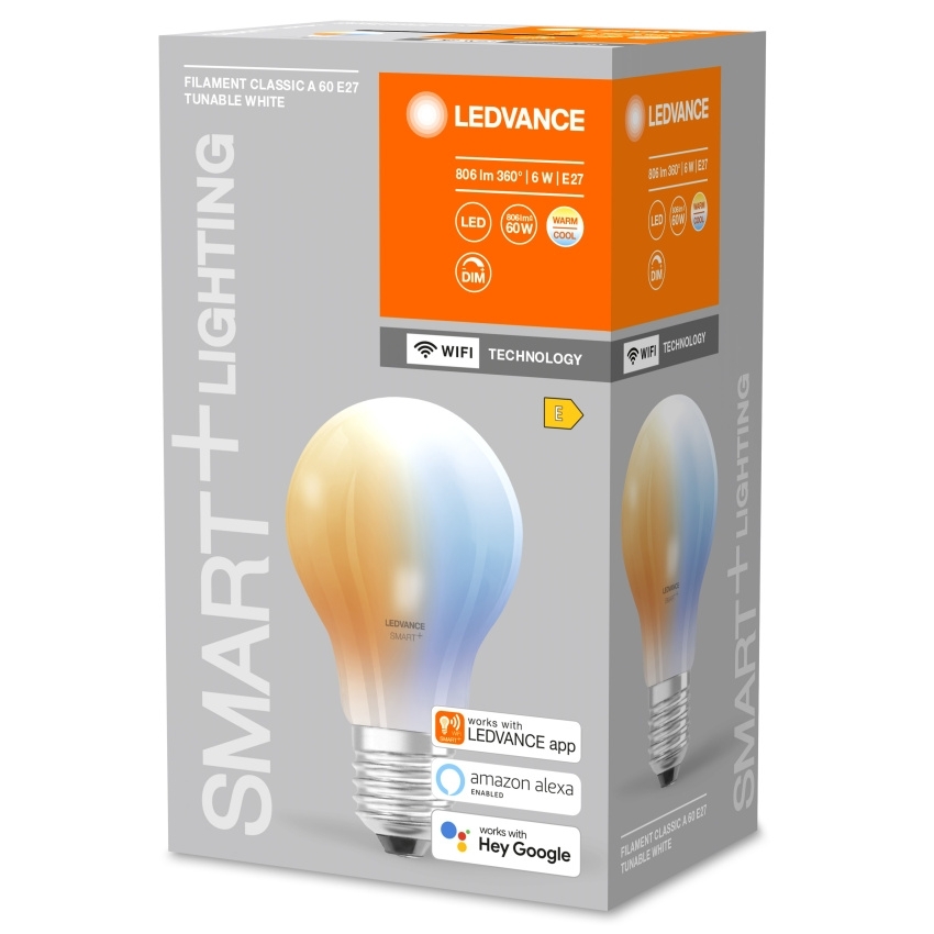 LED žárovka Classic LEDVANCE Smart WiFi CLA60 E27 6W (60W) 806 lm 2700-6500K 827-865 TW filament matná