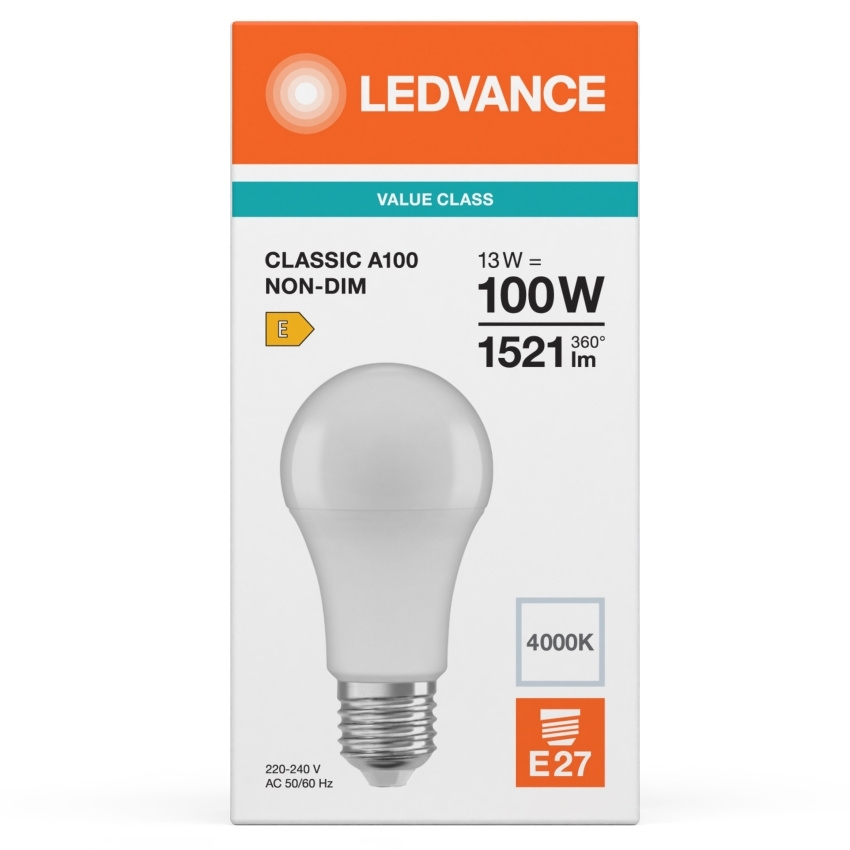 LED žárovka Classic LEDVANCE Value CLA100 E27 13W (100W) 1521 lm 4000K 840 matná