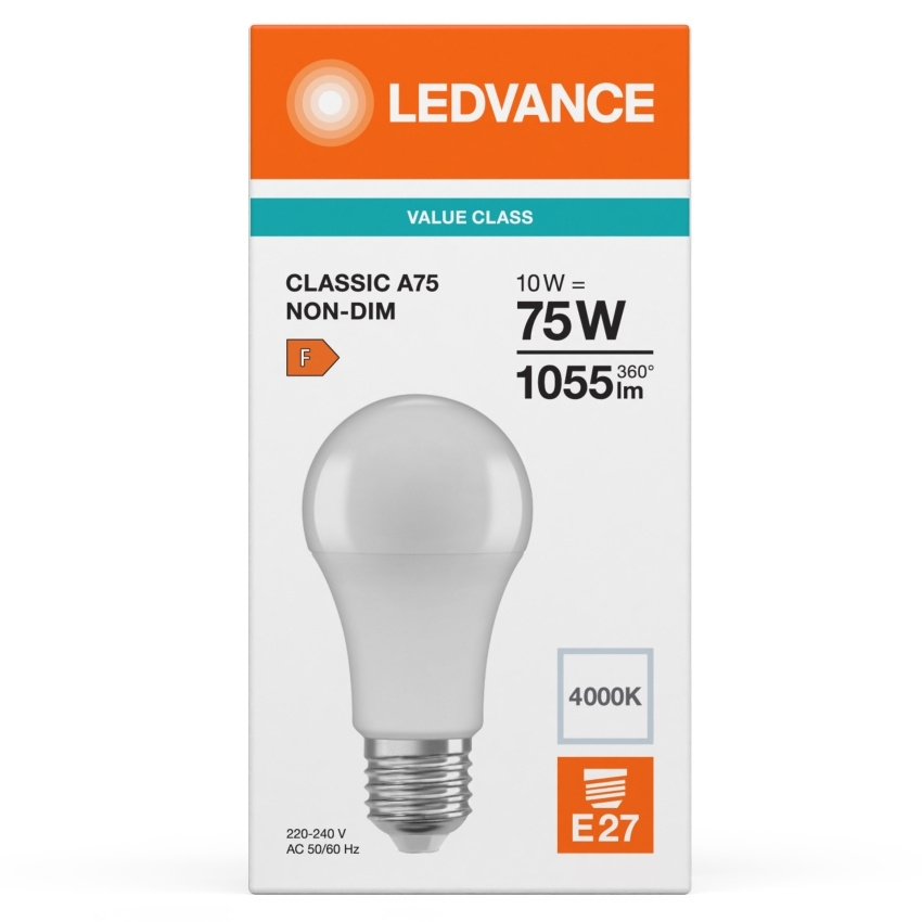LED žárovka Classic LEDVANCE Value CLA75 E27 10W (75W) 1055 lm 4000K 840 matná