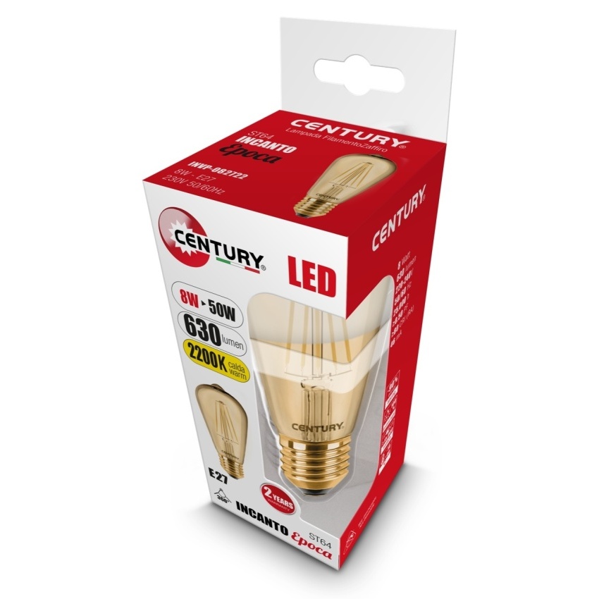 - Produkt: CENTURY LED ZDROJ FIL. ST64 EPOCA 8W E27 2200K 630LM 360ST 64X138MM INVP-082722