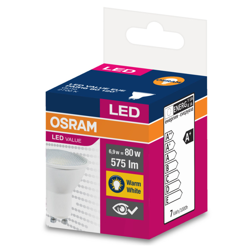 LED žárovka OSRAM VALUE GU10 PAR16 6.9W (50W) 575 lm 2700K 827 120 °