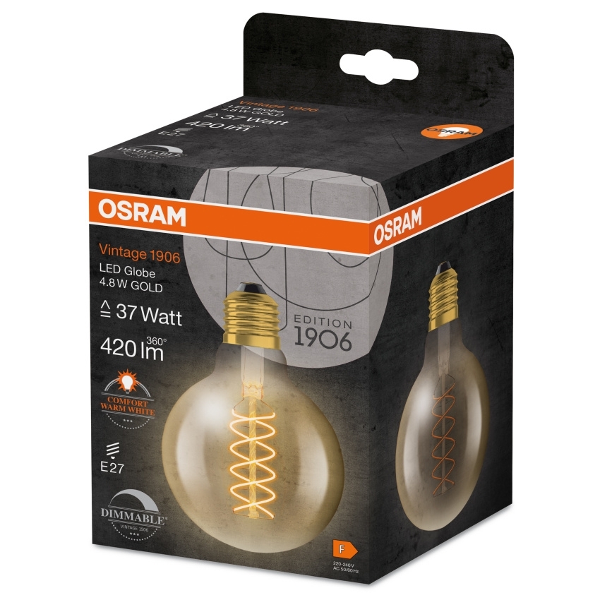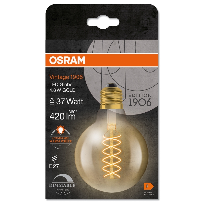 LED zdroj OSRAM Vintage 1906 Globe 95 37 Filament DIM 4.8W 822 Gold E27