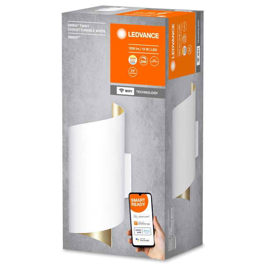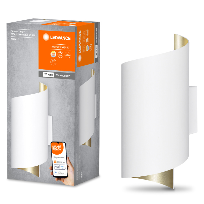 Chytré dekorativní nástěnné svítidlo s wifi technologií TW a stmívatelné, nahoru a dolů. Vlastnosti produktu: Ovládatelné pomocí LEDVANCE SMART+ WiFi aplikace (s minimem Android™ 4.4 nebo iOS 10.0). Možnost hlasového ovládání: Google Assistant nebo Amazon Alexa. Nastavitelná teplota chromatičnosti pomocí laditelné bílé: 3 000…6 500 K. Stmívatelné. Síťový protokol: WIFI. Výhody produktu: Snadná a rychlá instalace. Druh použití: Použití uvnitř. Kuchyně, obývací pokoje, dětské pokoje nebo domácí pracovny. Výbava / příslušenství: Včetně upevňovacích držáků. Včetně montážních šroubů a spojovacích kolíků. Pro ovládání pomocí aplikace nebo pro hlasové ovládání je zapotřebí kompatibilní systém Smart Home.. Pro ovládání pomocí aplikace LEDVANCE SMART + WiFi je zapotřebí chytrý telefon nebo tablet.