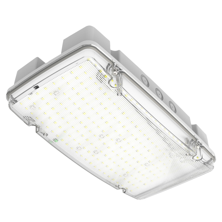 LEDVANCE EM BULKHEAD HLO E je robustní nouzové LED svítidlo pro průmysl, sklady a únikové cesty s autonomií 3 hodiny díky baterii LiFePO4. Nabízí automatické (AT) i manuální (MA) testování a je vybaveno integrovaným testovacím spínačem pro rychlou kontrolu funkce. Světelný tok 1500 lm při 5700 K, široký asymetrický vyzařovací úhel 70° × 140° a krytí IP66 zajišťují spolehlivé a jasné osvětlení i v náročných podmínkách. Svítidlo pracuje v režimu bez údržby (NM), je bez blikání (Pst LM < 1, SVM ≤ 0,4) a spadá do skupiny fotobiologické bezpečnosti RG0.