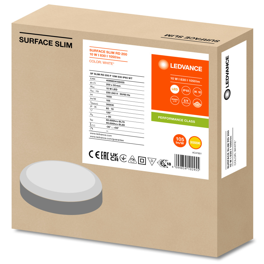 LEDVANCE SVÍTIDLO LED SF SLIM RD 200 P 10W 830 3000K IP65 PŘIS. KRUH.