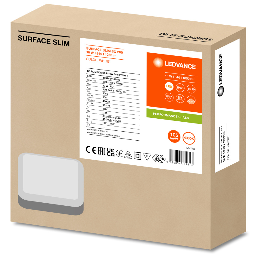 LEDVANCE SVÍTIDLO LED SF SLIM SQ 200 P 10W 840 4000K IP65 PŘIS. HRAN.
