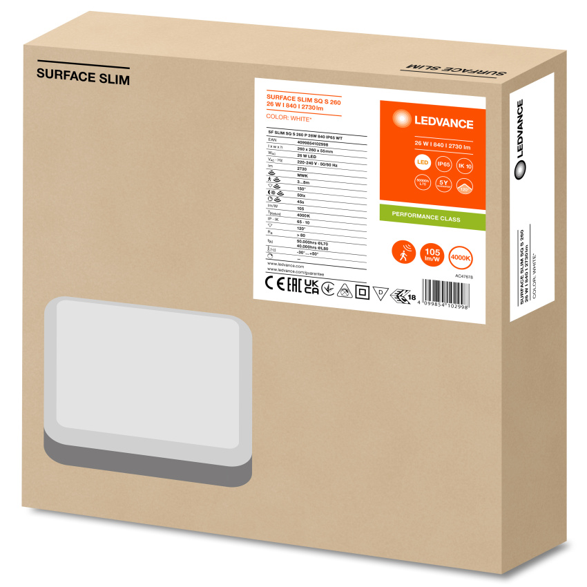LEDVANCE SVÍTIDLO LED SF SLIM SQ S 260 P 26W 840 4000K SENZOR IP65 PŘIS. HRAN.