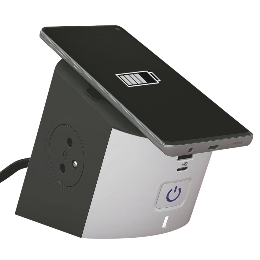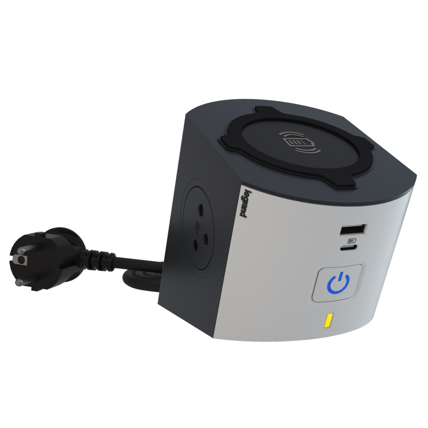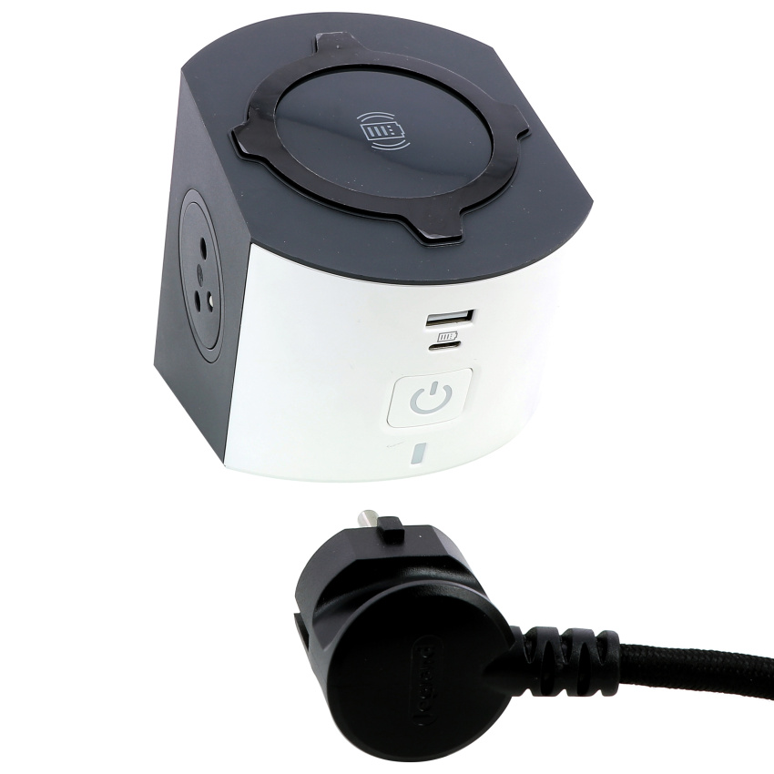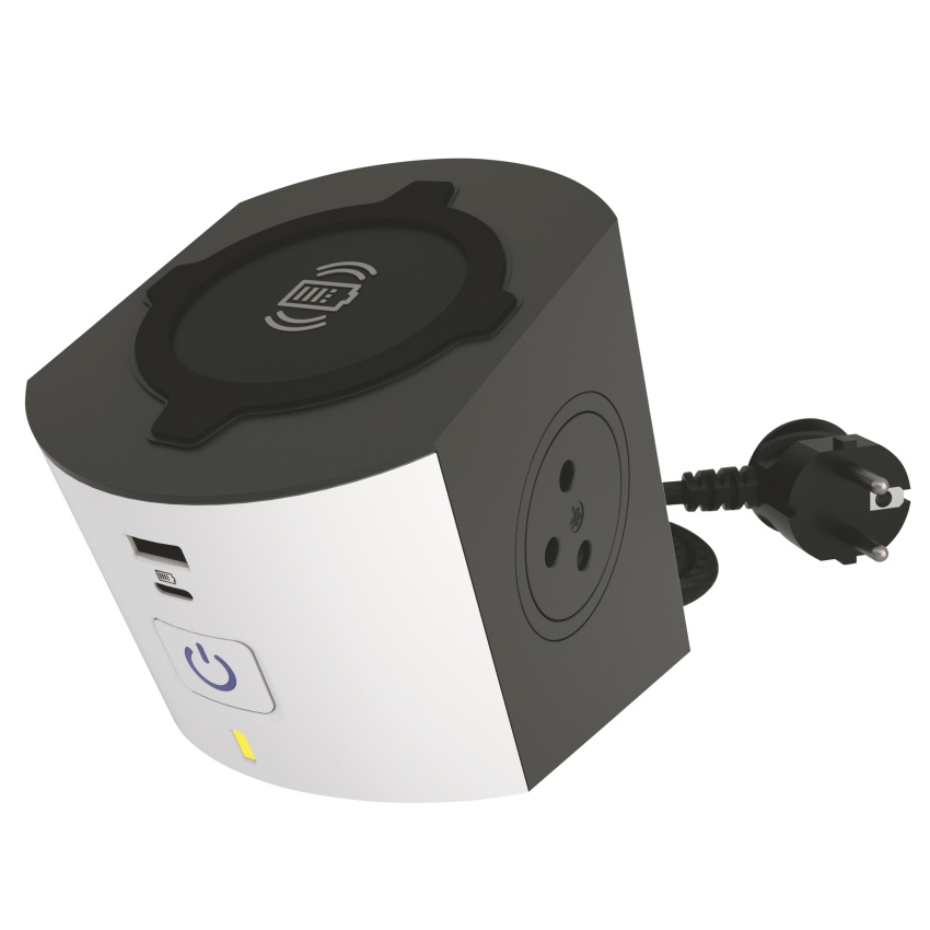 Kompaktní a praktický prodlužovací přívod s vlastní bezdrátovou nabíječkou.