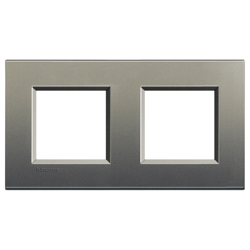 2+2-modulový hranatý rámeček. Osová rozteč: 71 mm. Provedení: matné (Zamak), barva šedá.