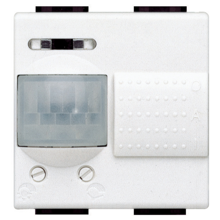 Spínač s pasivním infračerveným detektorem pohybu může být aktivován také externími tlačítky, relé výstup 6 A odporová/2 A indukční zátěž, s možností trvalého sepnutí a vypnutí, 230 V, 50 a 60 Hz, 2 moduly