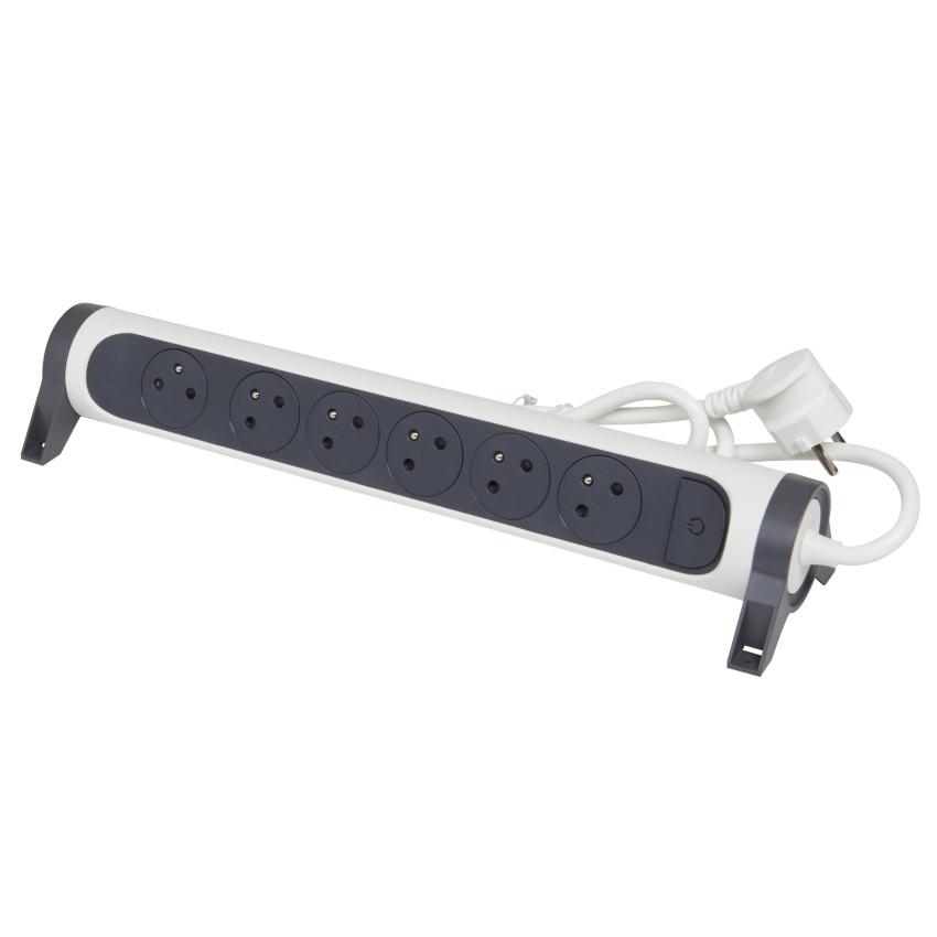 Prodlužovací přívod s válcovým otočným tělem a šesti 2P+T zásuvkami. Díky patentu společnosti Legrand se zarovnaná dna zásuvek zasunou dovnitř až po zastrčení vidlice, tím se dosahuje atraktivního designu a zamezuje hromadění prachu. Pootočené zásuvky poskytují prostor pro připojení i objemnějších nabíječek. Prodlužovací přívod je možné upevnit v horizontální i vertikální poloze a nechybí ani spínač pro vypnutí a zapnutí.
