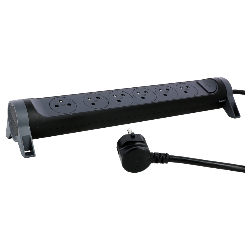 Prodlužovací přívod s válcovým otočným tělem a šesti 2P+T zásuvkami. Díky patentu společnosti Legrand se zarovnaná dna zásuvek zasunou dovnitř až po zastrčení vidlice, tím se dosahuje atraktivního designu a zamezuje hromadění prachu. Pootočené zásuvky poskytují prostor pro připojení i objemnějších nabíječek. Prodlužovací přívod je možné upevnit v horizontální i vertikální poloze a nechybí ani spínač pro vypnutí a zapnutí.