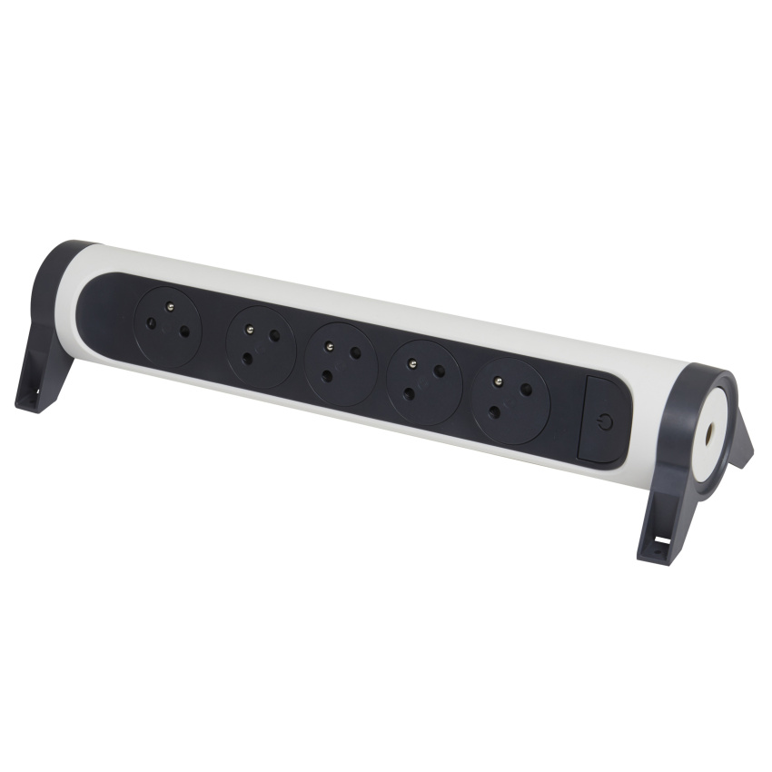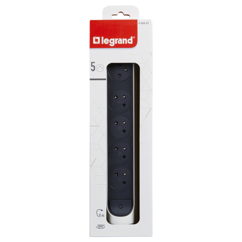 Prodlužovací přívod s válcovým otočným tělem a pěti 2P+T zásuvkami. Díky patentu společnosti Legrand se zarovnaná dna zásuvek zasunou dovnitř až po zastrčení vidlice, tím se dosahuje atraktivního designu a zamezuje hromadění prachu. Pootočené zásuvky poskytují prostor pro připojení i objemnějších nabíječek. Prodlužovací přívod je možné upevnit v horizontální i vertikální poloze a nechybí ani spínač pro vypnutí a zapnutí.