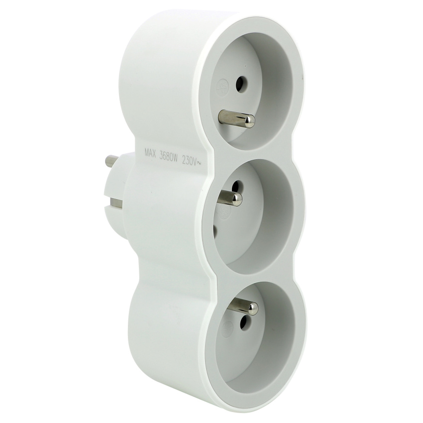 Čelní rozbočovač se třemi 2P+T zásuvkami.